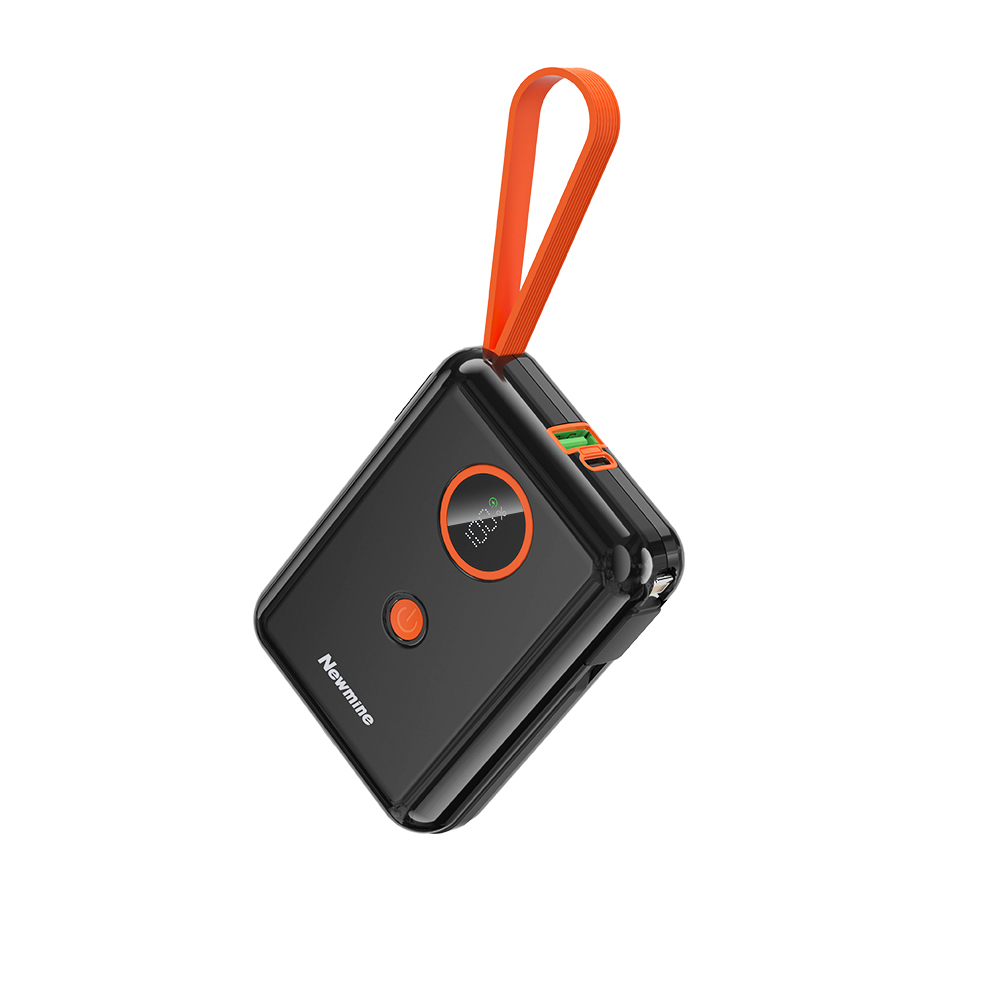 پاوربانک برند NEWMINE مدل AL07 با ظرفیت باتری داخلی 10.000 میلی آمپر ساعت و توان خروجی 22.5 وات می باشد. این پاوربانک دارای 2 کابل متصل از نوع Lightning و Type-C بوده که از مزیت های این پاوربانک است. همچنین پاوربانک نیوماین دارای بدنه بسیار شیک و با طراحی خاص و در عین حال مقاوم ، به همراه یک بند نگهدارنده است که حمل و نقل آن را نیز بسیار آسان می سازد. علاوه بر کابل های متصل ، این پاوربانک دارای پورت ورودی / خروجی Type-C و یک پورت USB نیز می باشد لازم به ذکر است که کابل متصل به بدنه قابلیت جدا شدن از زیر پاوربانک را نیز دارد که میتوانیم آن را برای شارژ خود پاوربانک استفاده کنیم . همچنین این دستگاه دارای نمایشگر عددی میزان شارژ نیز می باشد